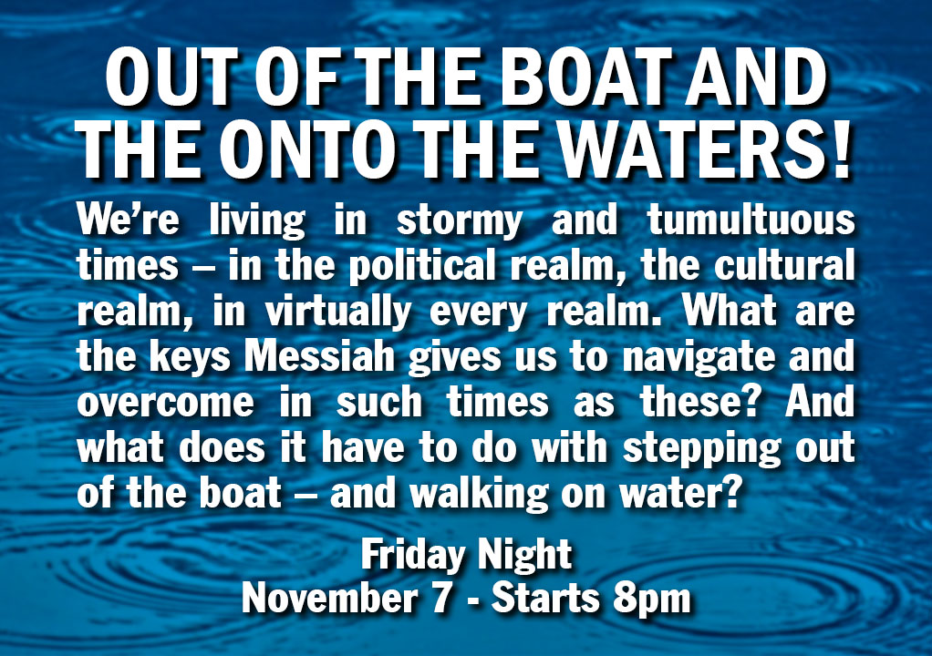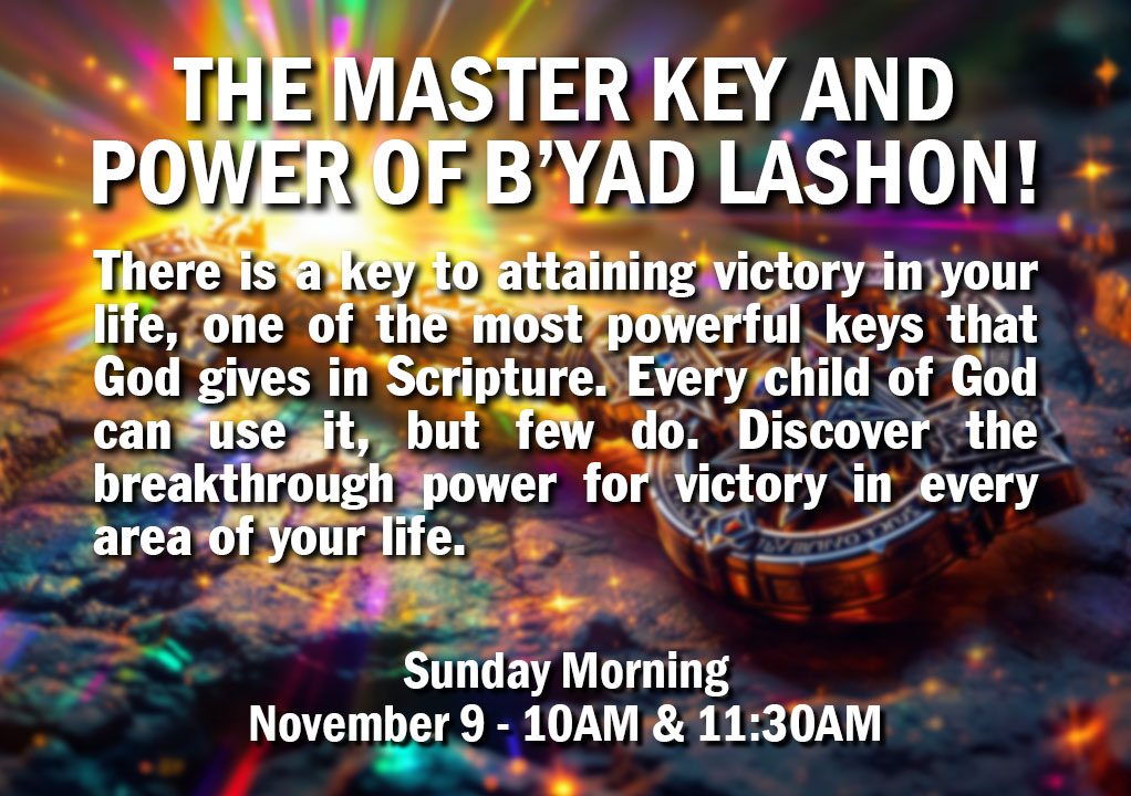 | NEXT FRIDAY NIGHT: OUT OF THE BOAT AND THE ONTO THE WATERS!   | NEXT SUNDAY MORNING: THE MASTER KEY AND POWER OF B’YAD LASHON!   |