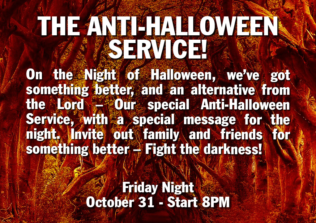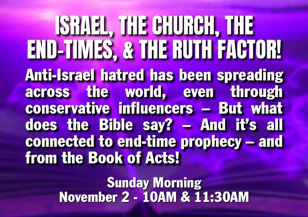 | THIS FRIDAY NIGHT: THE ANTI-HALLOWEEN SERVICE!   | THIS SUNDAY MORNING: ISRAEL, THE CHURCH, THE END-TIMES, & THE RUTH FACTOR!   |